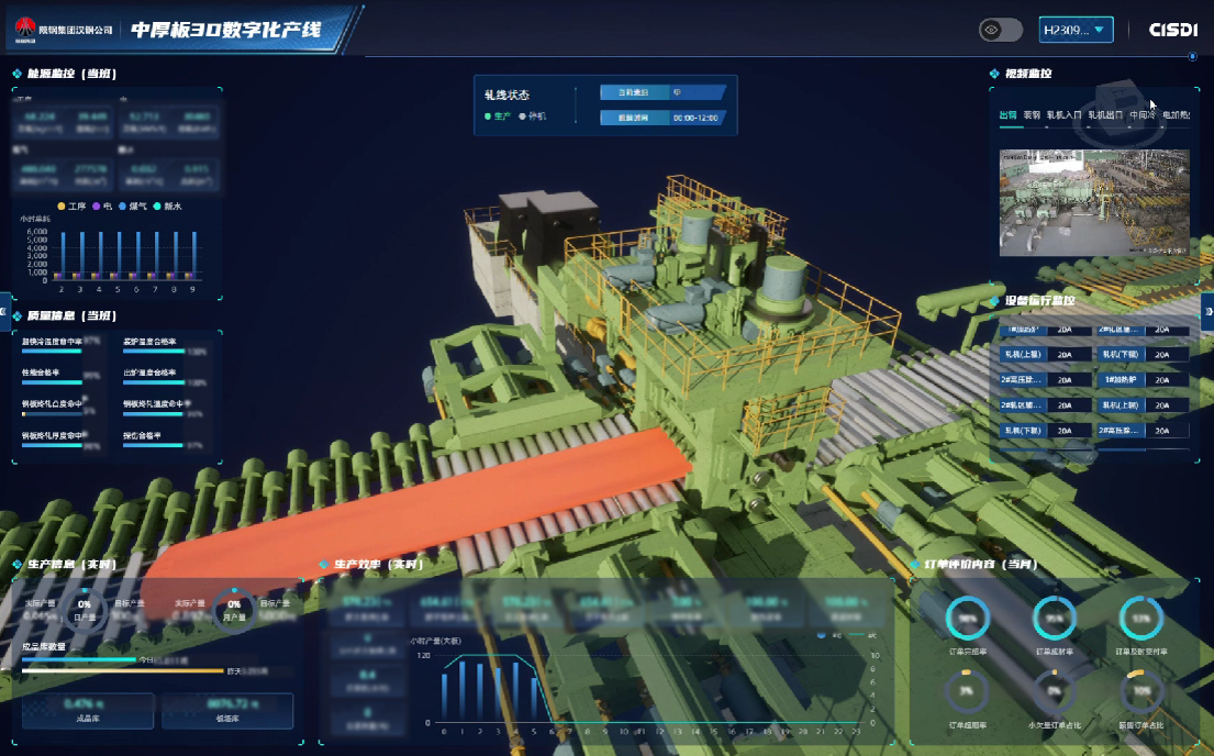 漢鋼中厚板EPC項目由中冶賽迪總承包建設,在設計、建造和運維全周期開展數字化應用。設計階段進行數字化設計,精準控制進度、質量及工程量;建造階段依托中冶賽迪“輕呈”平臺實現精細化施工管理,助力項目創造同類生產線最快建設紀錄;運維階段通過數字賦能,打造行業領先的數字孿生產線。