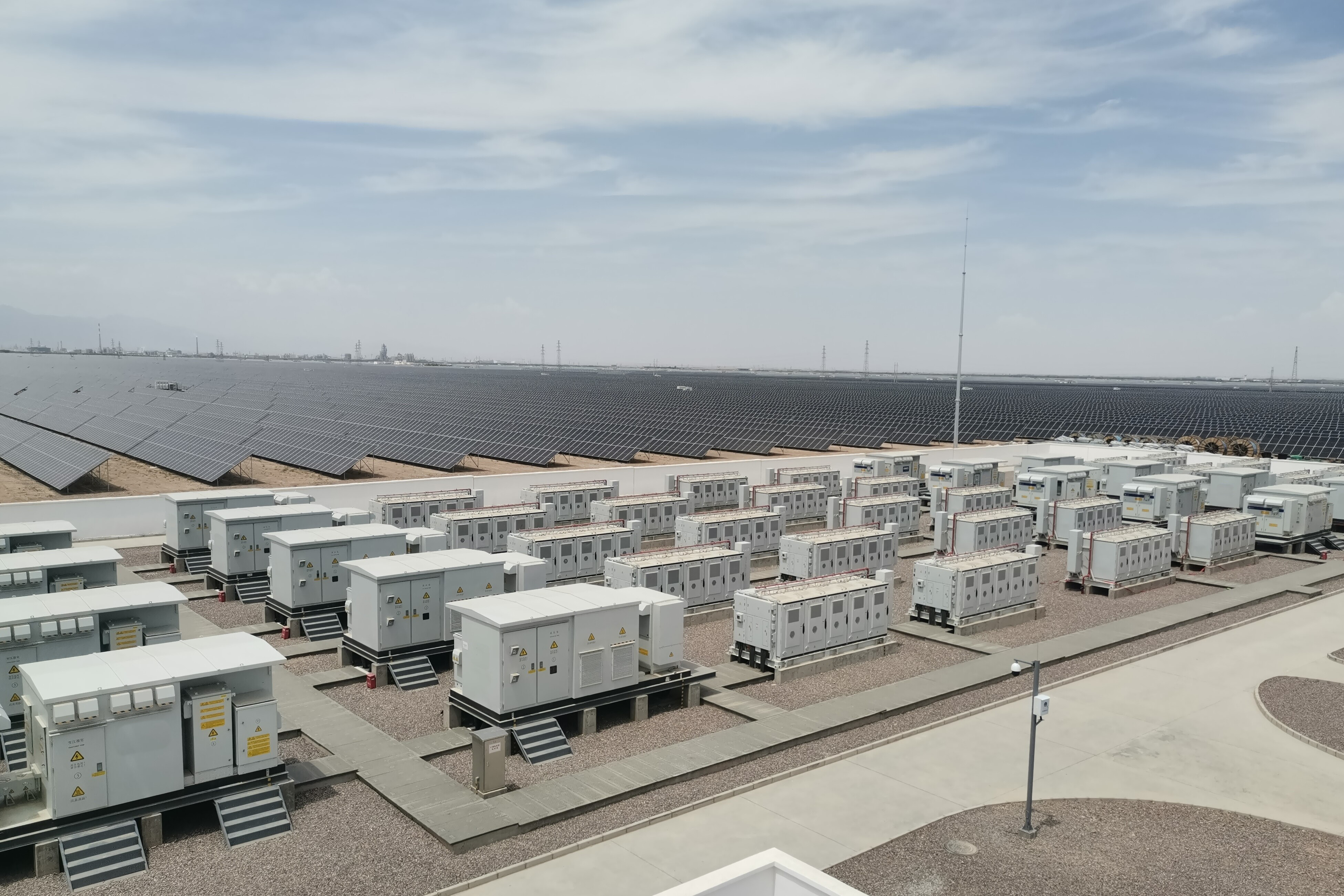 由中冶京誠承建的阿拉善電網側儲能電站項目是阿拉善盟儲能工程領域的一項重大突破,規劃建設10萬千瓦儲能裝機、40萬千瓦時儲能容量。項目僅用88天完成建設攻堅,實現全容量并網及動態調試,成功通過測試轉商。項目投用后充分發揮削峰填谷作用,緩解電力供需矛盾,對優化地區能源結構、加速“雙碳”目標落地具有重要意義。